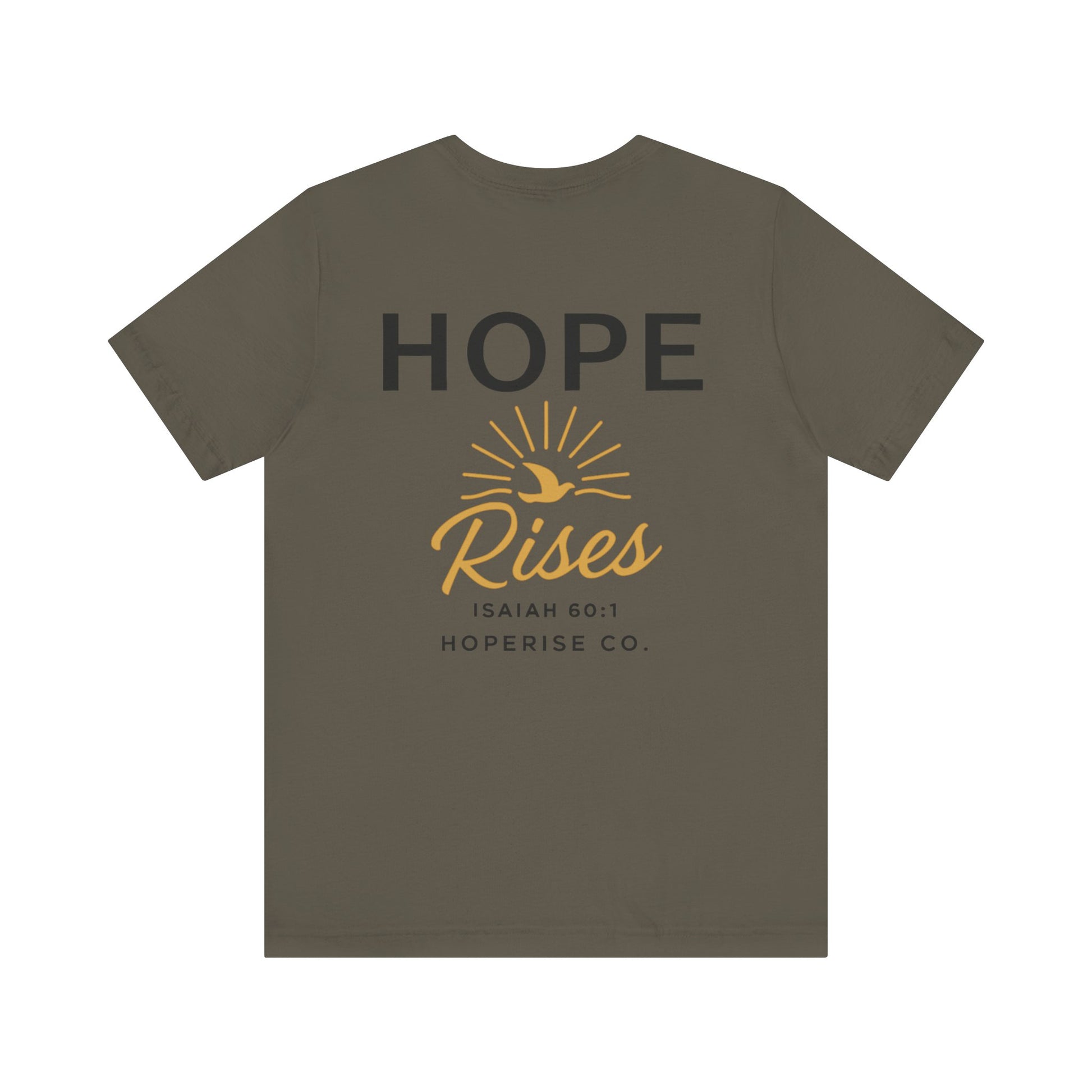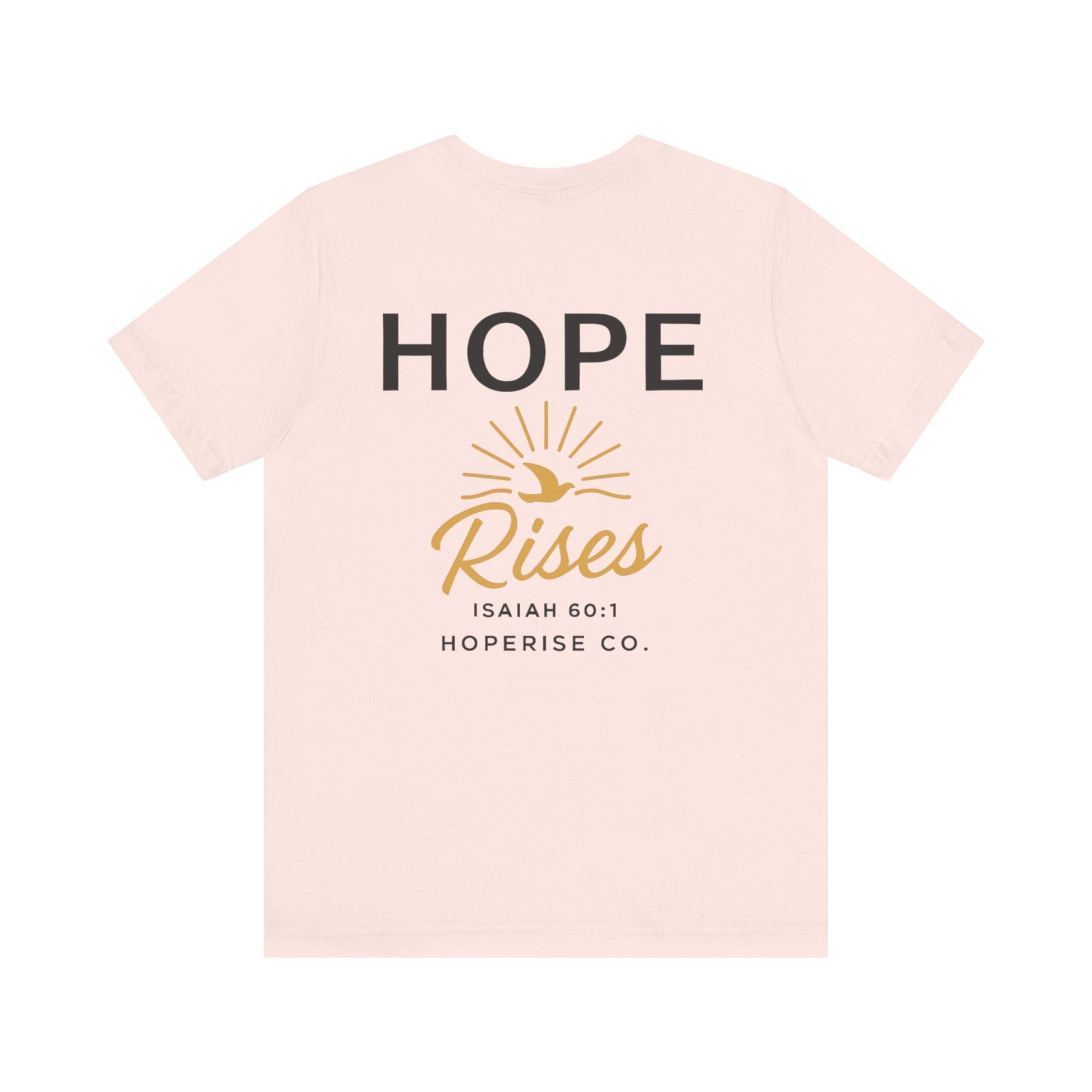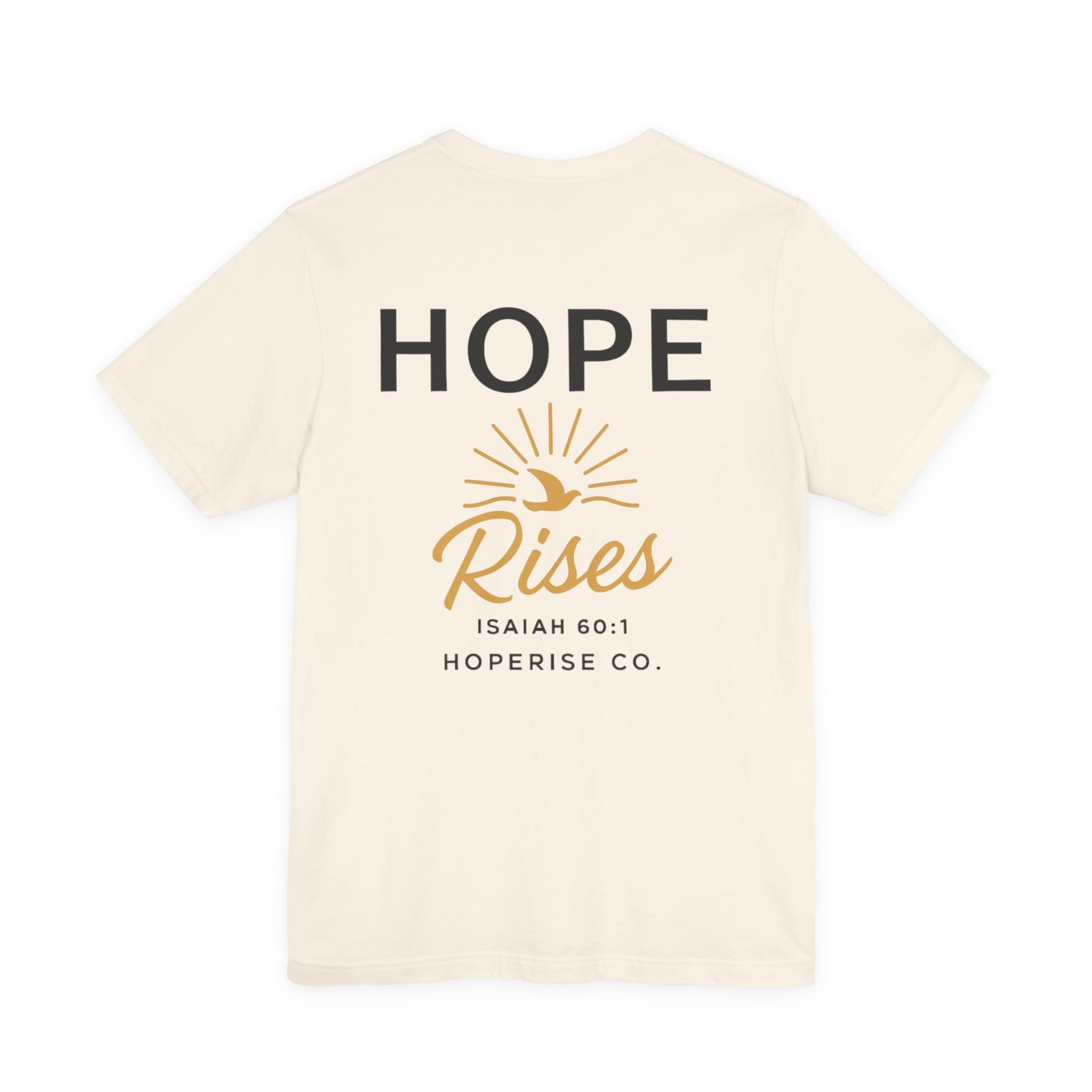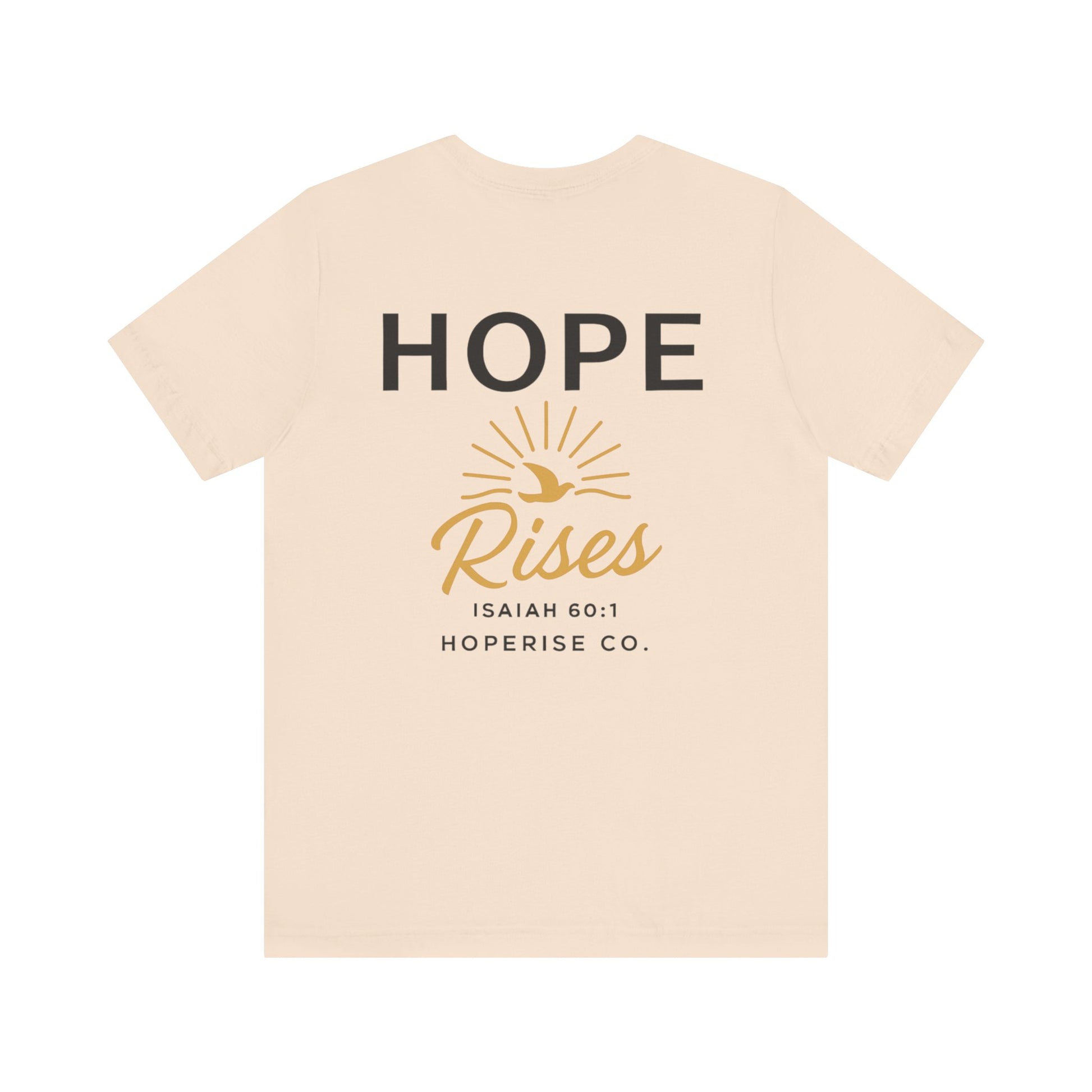 The Hope Rises tee from Hoperise Co. captures the essence of faith and renewal. Inspired by Isaiah 60:1, it reminds us that even in darkness, God’s light rises within us. Designed with a modern minimalist style, this shirt is the signature piece of our Faith Essentials Collection.