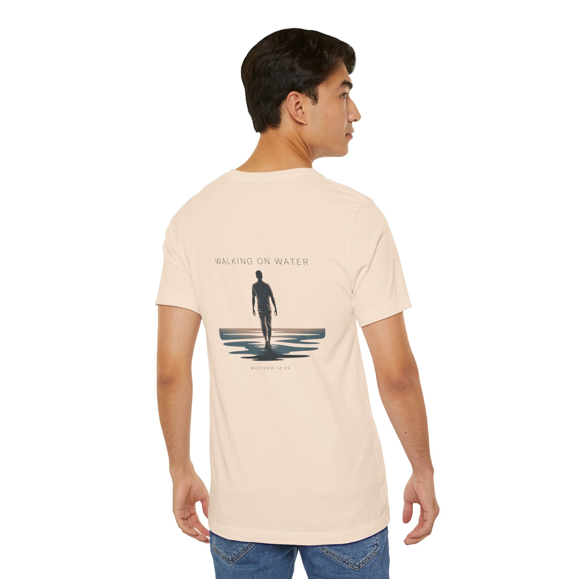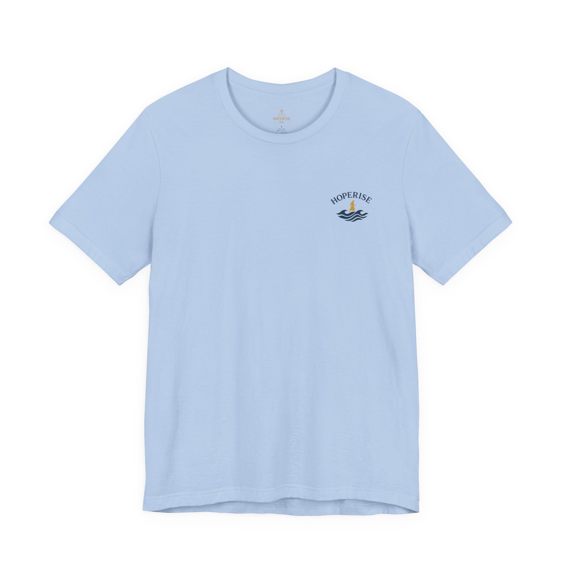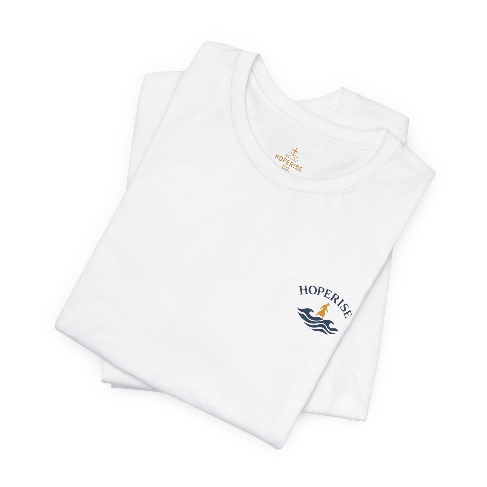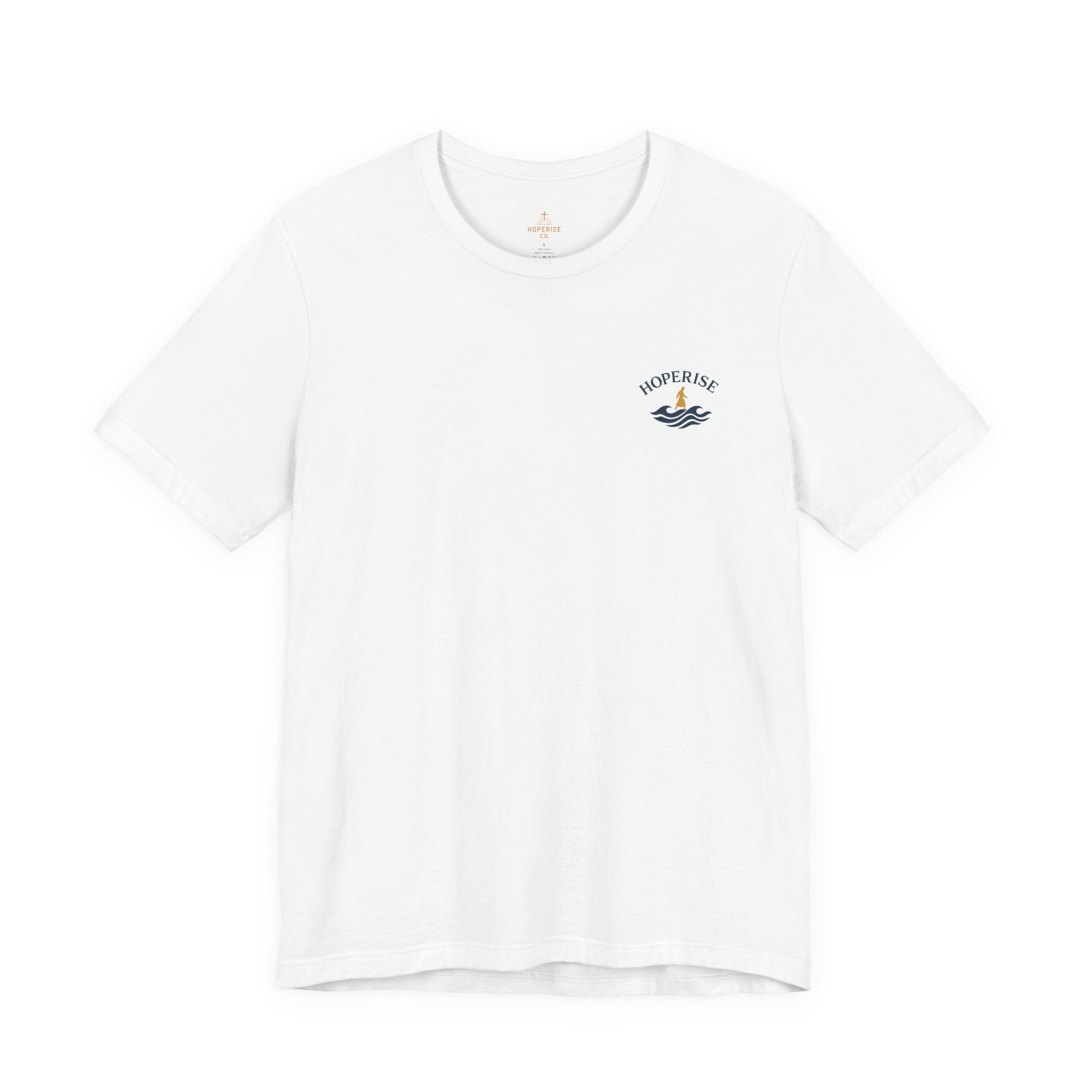 The Walking on Waters tee from Hoperise Co. is a tribute to courage, trust, and divine focus. Inspired by Matthew 14:29, this modern Christian design blends clean minimalism with deep symbolism — reminding you that faith is stronger than fear.